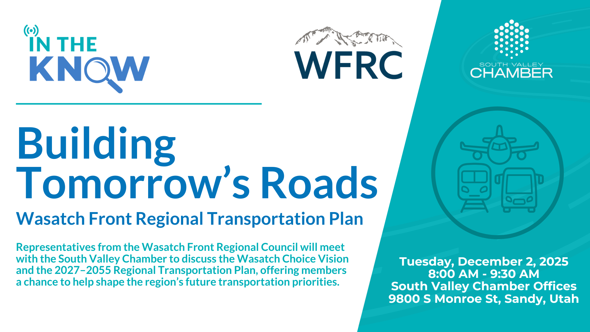 The South Valley Chamber of Commerce is the driving force for business growth and connection across seven of Utah’s fastest-growing cities: Sandy, Draper, Riverton, South Jordan, Cottonwood Heights, Herriman, and Bluffdale.
