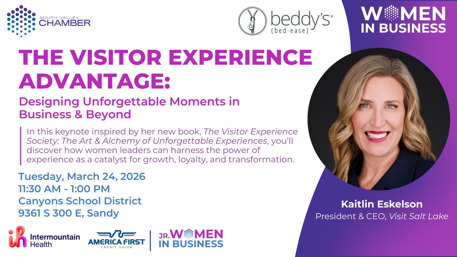 The South Valley Chamber of Commerce is the driving force for business growth and connection across seven of Utah’s fastest-growing cities: Sandy, Draper, Riverton, South Jordan, Cottonwood Heights, Herriman, and Bluffdale.