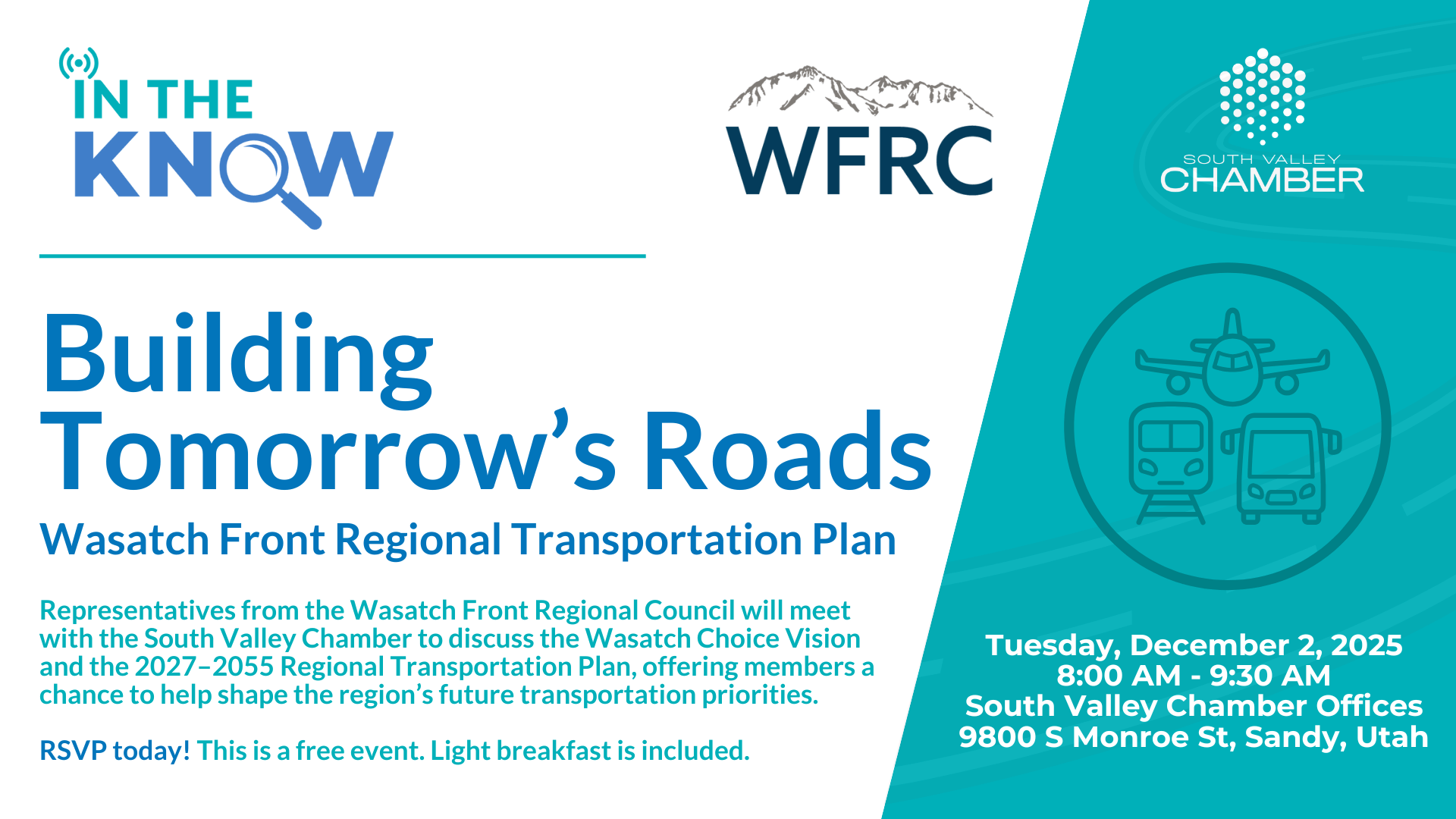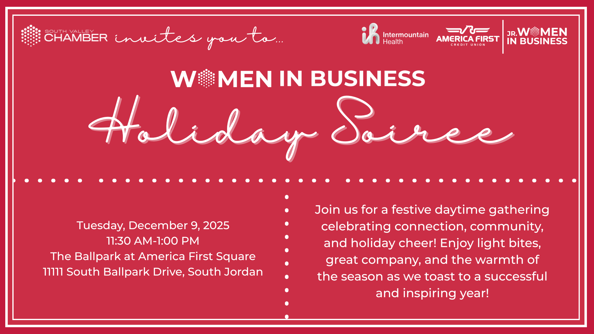The South Valley Chamber of Commerce is the driving force for business growth and connection across seven of Utah’s fastest-growing cities: Sandy, Draper, Riverton, South Jordan, Cottonwood Heights, Herriman, and Bluffdale.